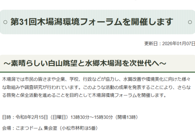 開催日時:2026年2月15日(日)13:30~15:30 開催場所:こまつドーム 集会室(石川県小松市)