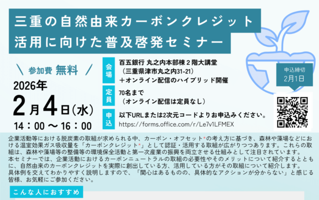 三重の自然由来カーボンクレジット活用に向けた普及啓発セミナーを開催(三重)
