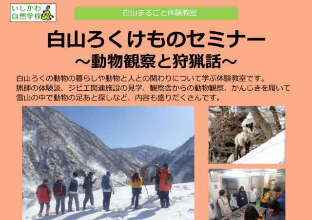 白山まるごと体験教室「白山ろくけものセミナー ~動物観察と狩猟話~」を開催(石川)