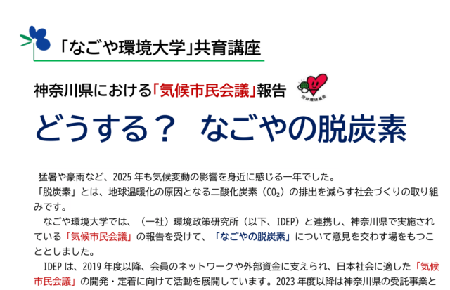 「どうする? なごやの脱炭素」~神奈川県における「気候市民会議」報告~を開催(愛知)