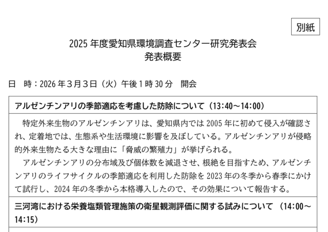 日時:2026年3月3日(火)13:30~16:00/場所:愛知県環境調査センター+オンライン/申込:2月27日(金)まで