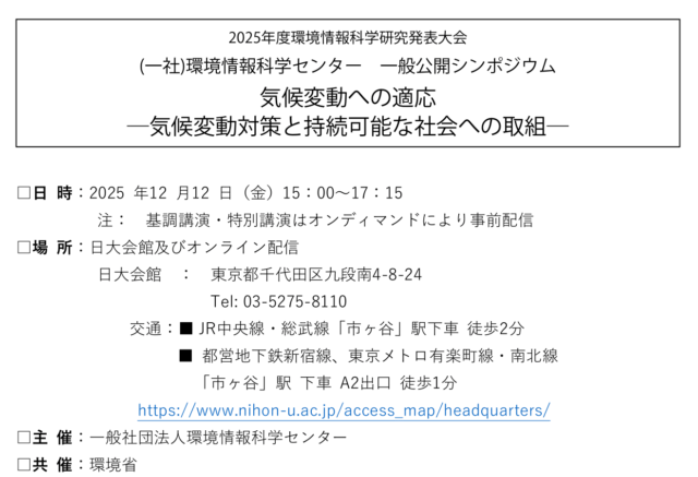 一般公開シンポジウム「気候変動への適応-気候変動対策と持続可能な社会への取組-」を開催