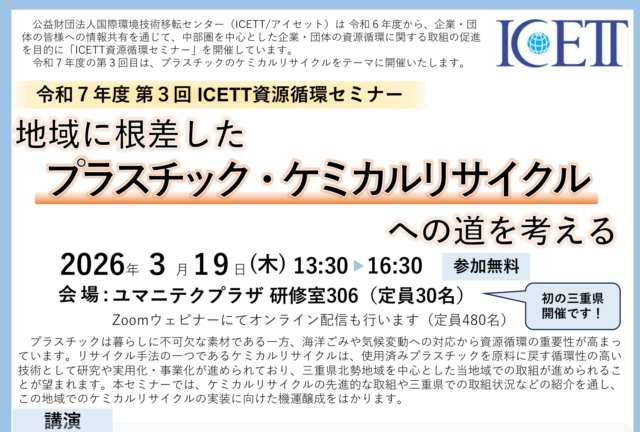 令和7年度 第3回ICETT資源循環セミナー「地域に根差したプラスチック・ケミカルリサイクルへの道を考える」を開催