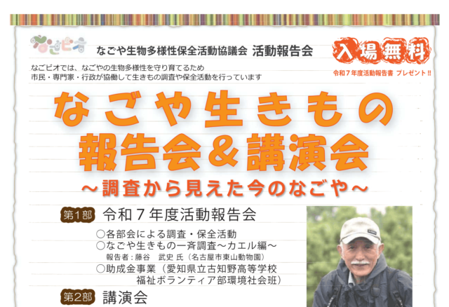 「なごや生きもの報告会&講演会~調査から見えた今のなごや~」を開催(愛知)