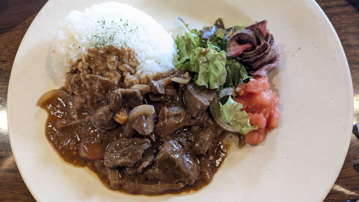 そして、その後にいただいた昼食は、この日の視察エクスカーション全体を振り返ることのできるメニューになっていました。半田の資源循環の取組に参画・協力している農家さんのお米や牛肉が食材となっており、大変美味なうえに学びの多いランチを堪能して、本年度の中間共有会は終了しました。
