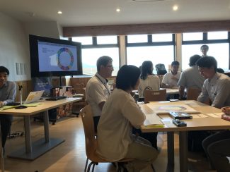 午後は社会学の専門家であるIJES渡部先生の「SDGsと地域循環共生圏」の講演、南砺市エコビレッジ構想の紹介、SDGs間の関係性の体感ワークショップが実施されました。渡部先生のお話の中で17の目標を全部一度に取組むというより、身近なできるところから取り組むことが重要とのご指摘が心に残りました。また活動しながら考えていくことが、新たな協働を生み出すということが実例を交えながら紹介され、ワークショップでは南砺市を事例としてSDGsの関連性を議論が行われるなど、非常に実践的な内容となりました。
