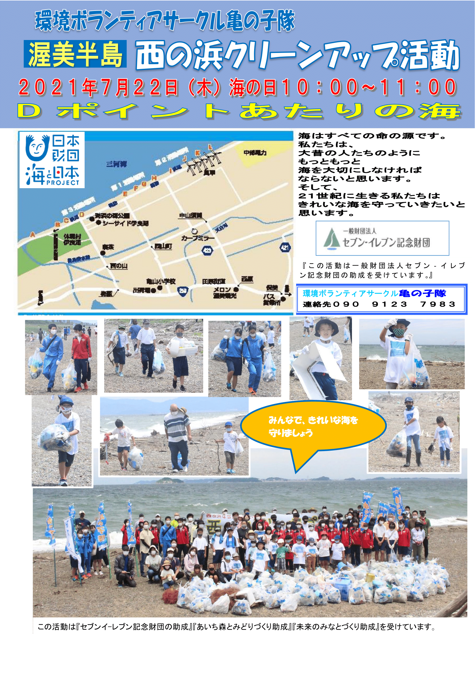 環境ボランティアサークル亀の子隊は、渥美半島 西の浜クリーンアップ活動を実施します。
