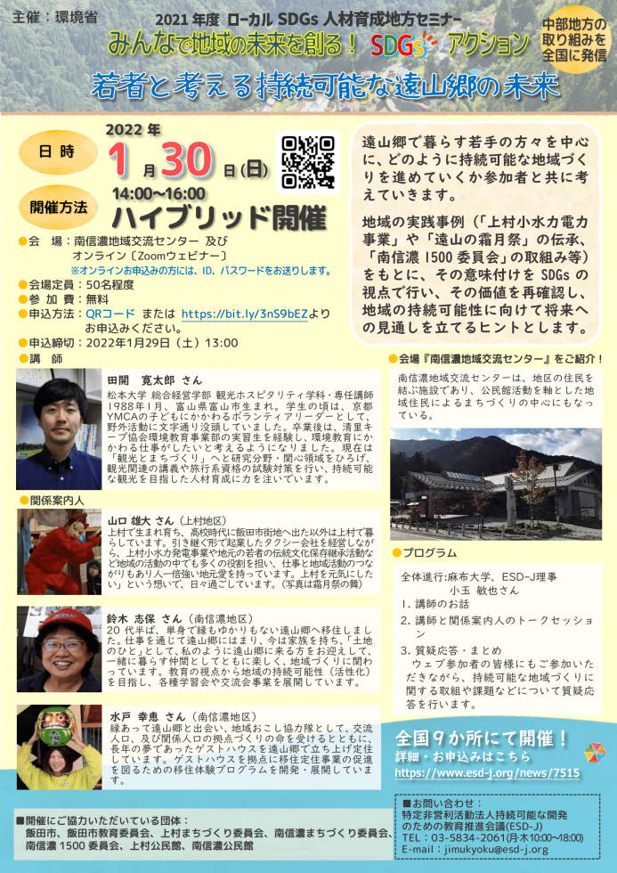 ローカルSDGs人材育成地方セミナー「若者と考える持続可能な遠山郷の未来」をハイブリッド開催