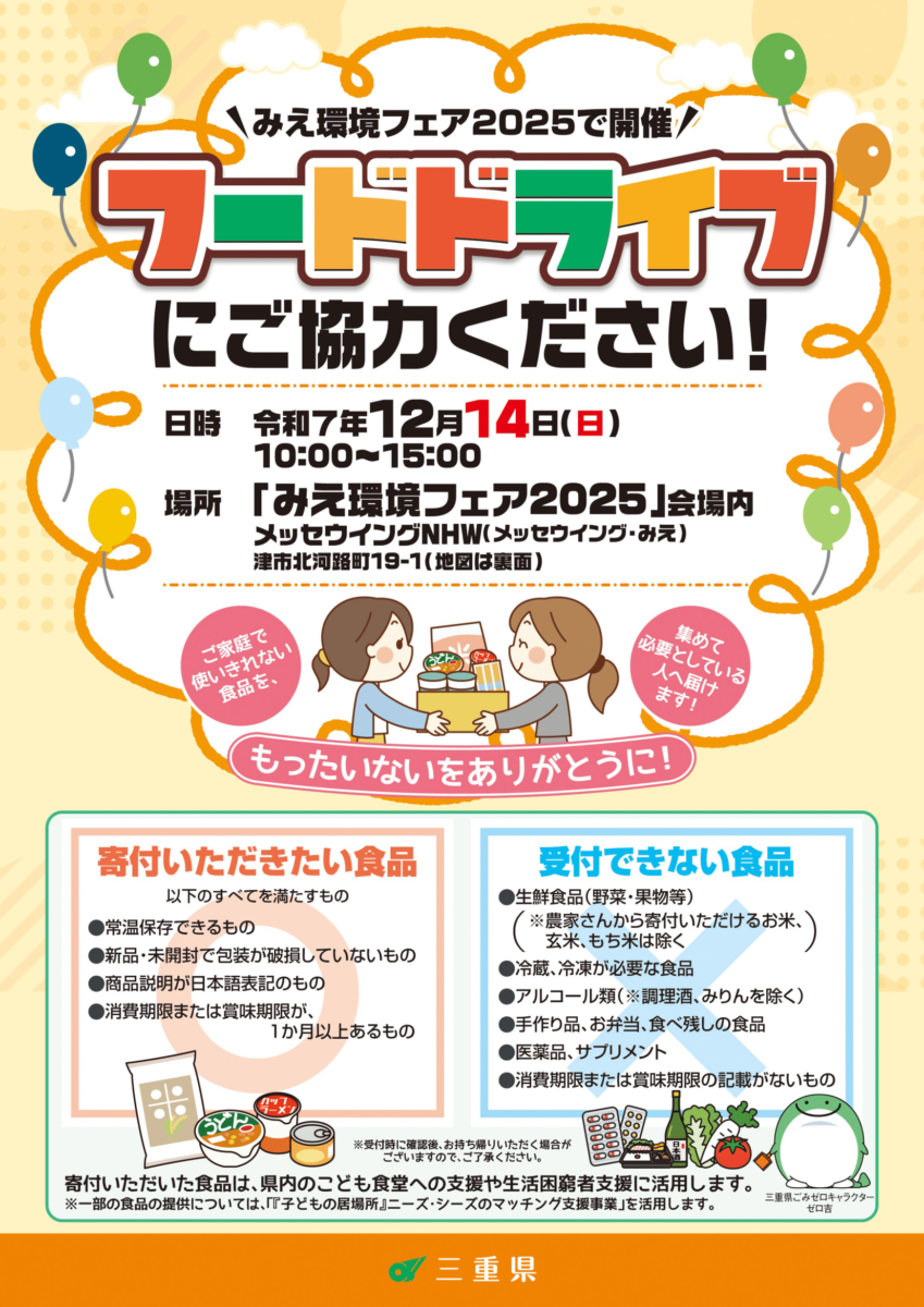 「みえ環境フェア2025」で開催するフードドライブへのご協力をお願いします!