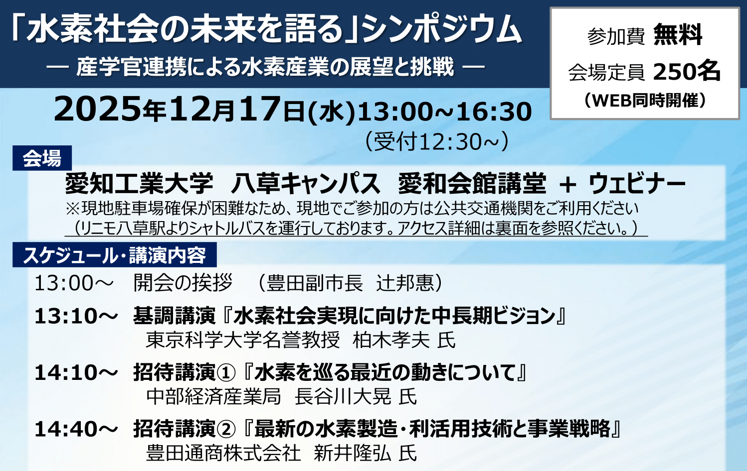 「水素社会の未来を語る」シンポジウム―産学官連携による水素産業の展望と挑戦―を開催(愛知)