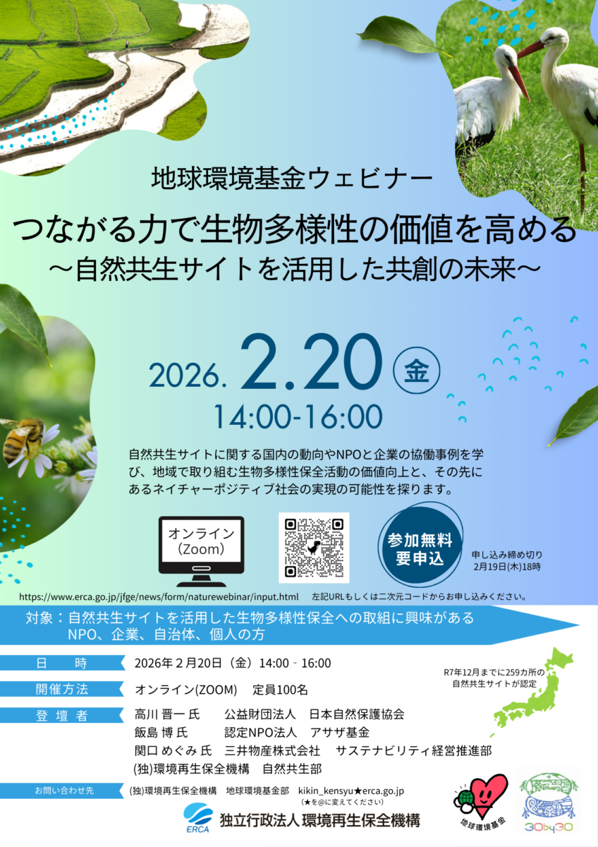 《地球環境基金ウェビナー》つながる力で生物多様性の価値を高める~自然共生サイトを活用した共創の未来~を開催