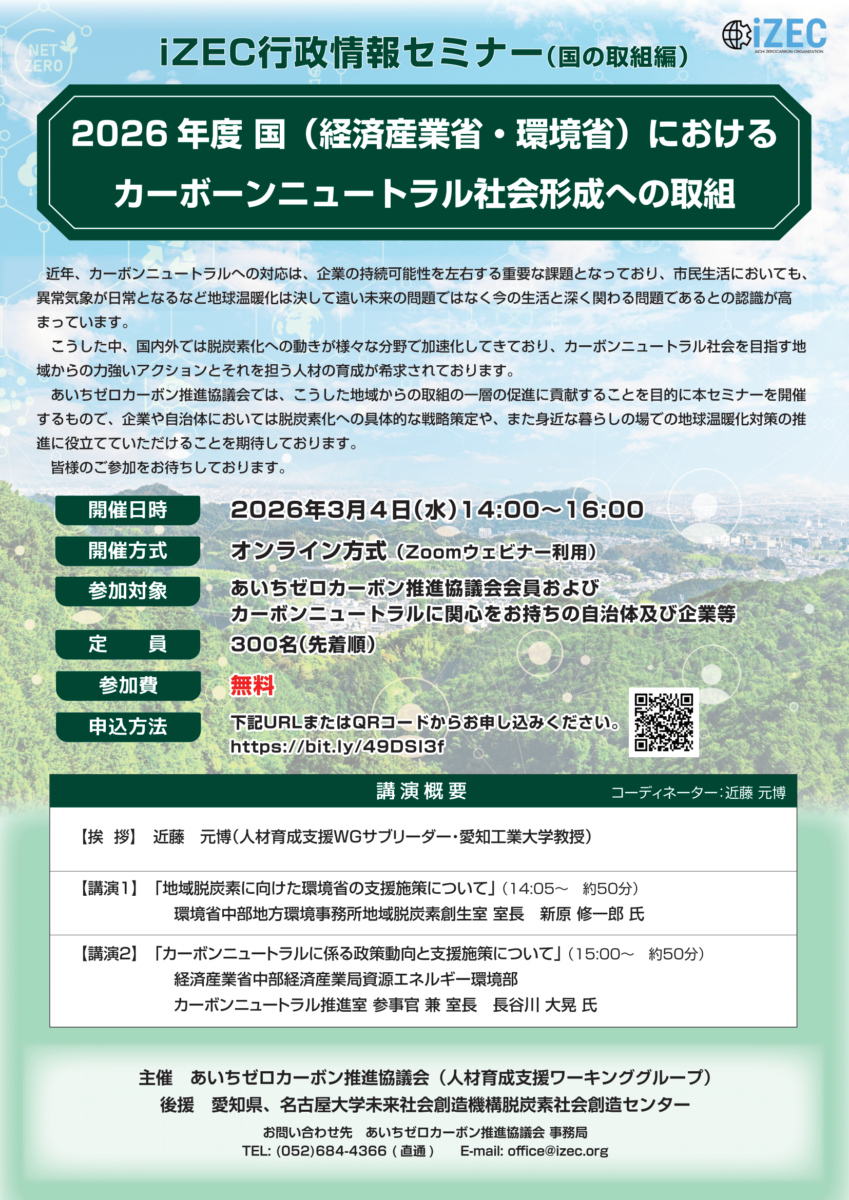 iZEC行政情報セミナー(国の取組編):2026年度 国(経済産業省・環境省)におけるカーボンニュートラル社会形成への取組を開催