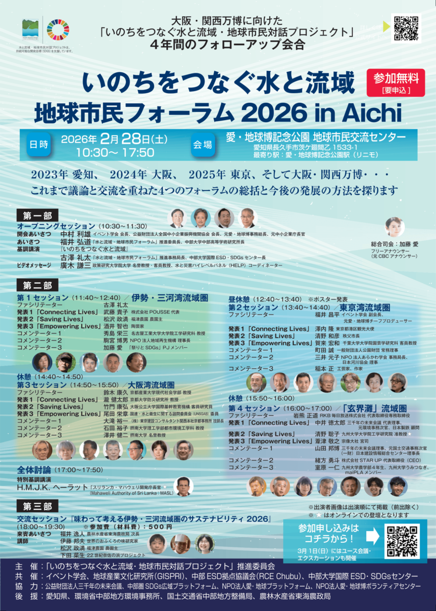 「いのちをつなぐ水と流域・地球市民フォーラム2026 in Aichi」を開催(愛知)