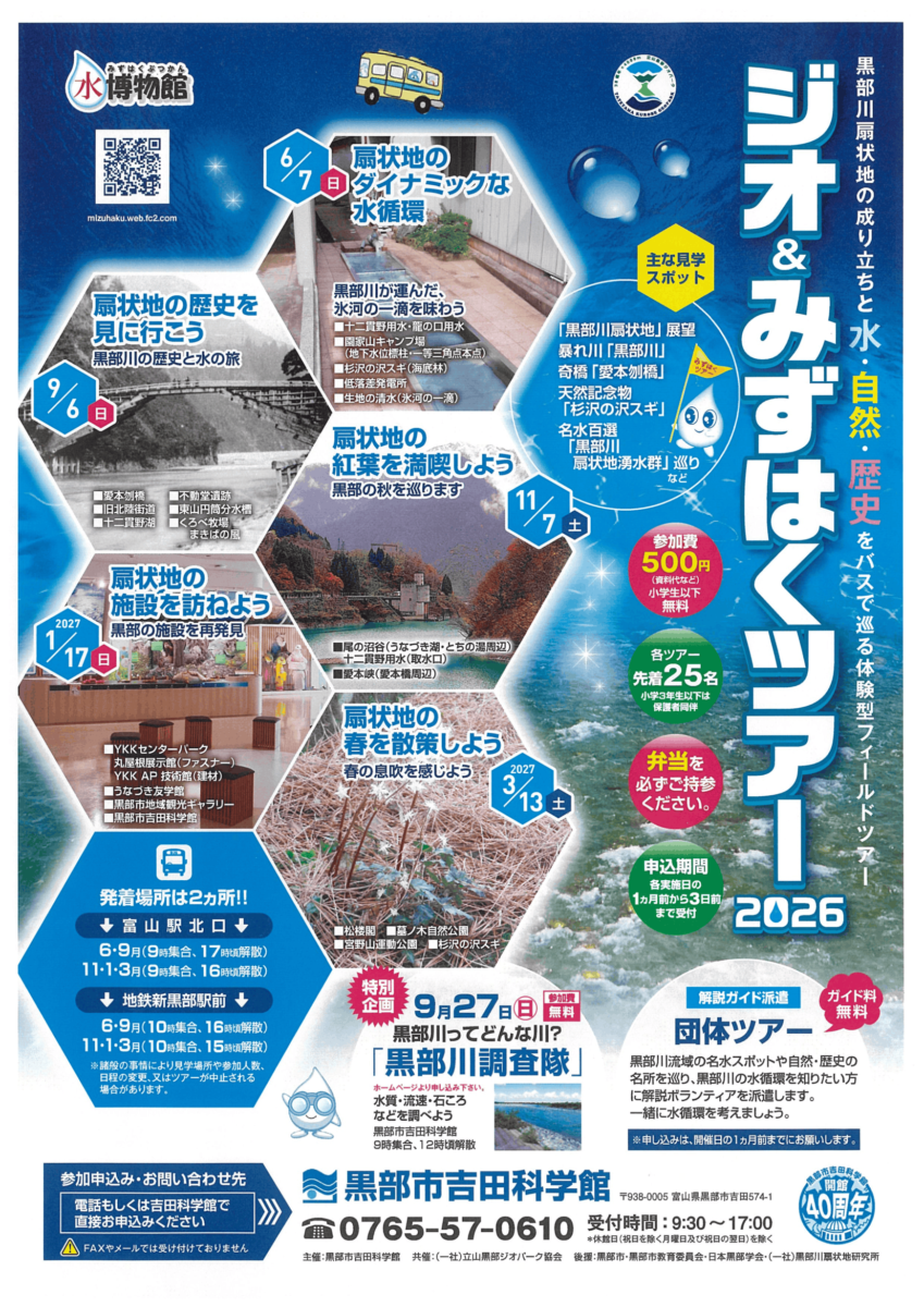 黒部市吉田科学館は、ジオ&みずはくツアー2026「扇状地のダイナミックな水循環」を開催します。