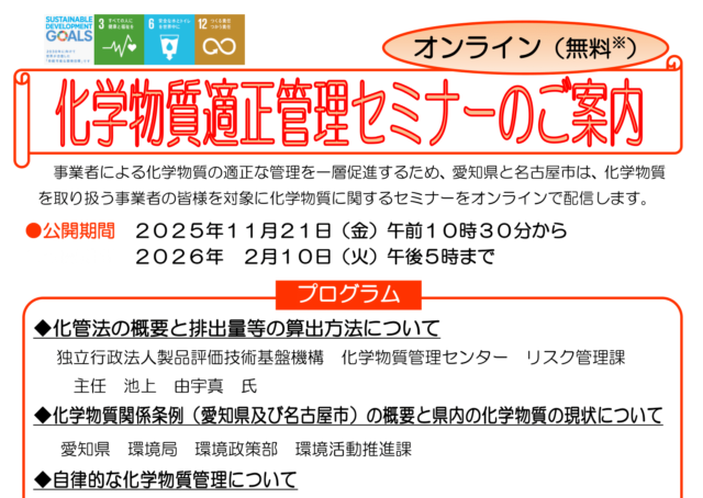 化学物質適正管理セミナー(オンライン)を開催(愛知)
