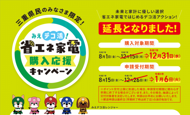 「みえデコ活省エネ家電購入応援キャンペーン」の期間を延長(三重)