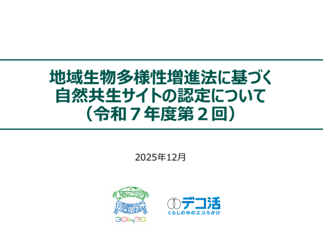地域生物多様性増進法に基づく「自然共生サイト」の認定(令和7年度第2回)について