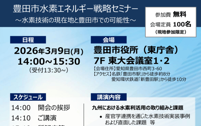 「豊田市水素エネルギー戦略セミナー~水素技術の現在地と豊田市での可能性~」を開催(愛知)