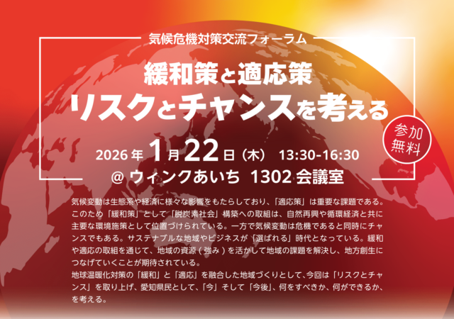 気候危機対策交流フォーラム「緩和策と適応策 リスクとチャンスを考える」を開催(愛知)