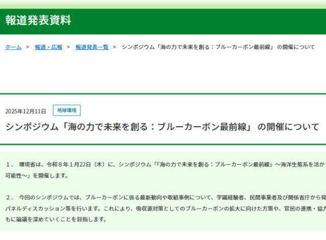 シンポジウム「海の力で未来を創る:ブルーカーボン最前線」を開催
