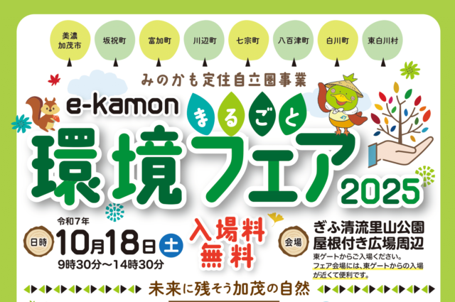 日時:2025年10月18日(土)9:30~14:30/会場:ぎふ清流里山公園/みのかも定住自立圏の市町村が合同で開催する環境フェアです。